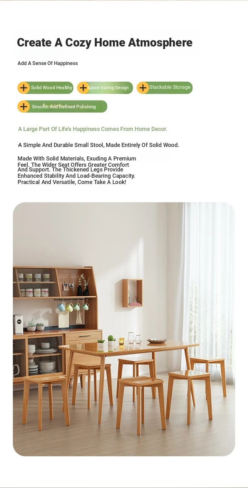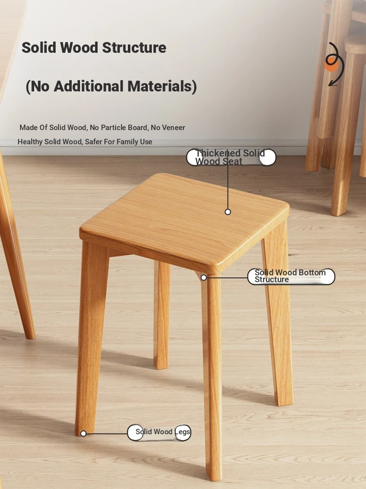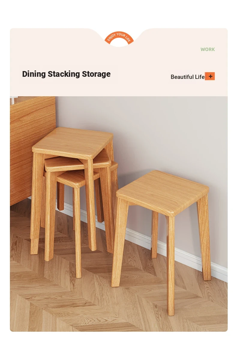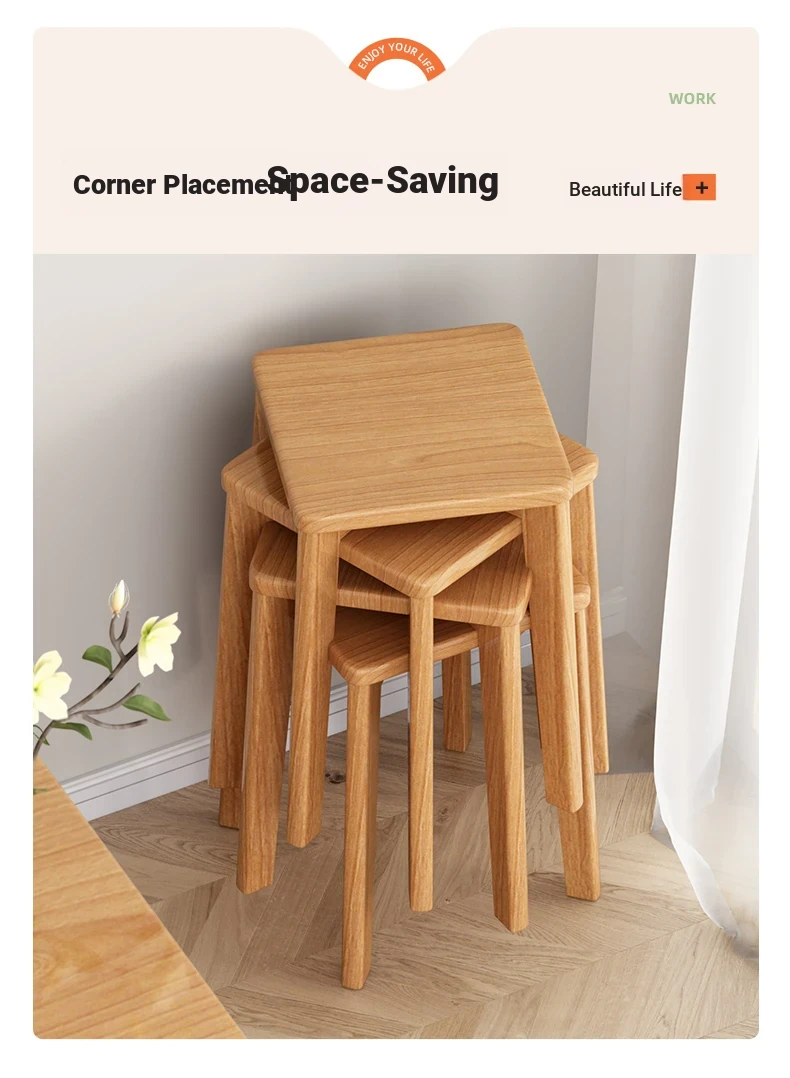 Modern Solid Wood Makeup Stool - Versatile, Space-Saving, and Stylish Small Seating for Living Room or Dining Table - Ideal for Home Use and Easy to Stack