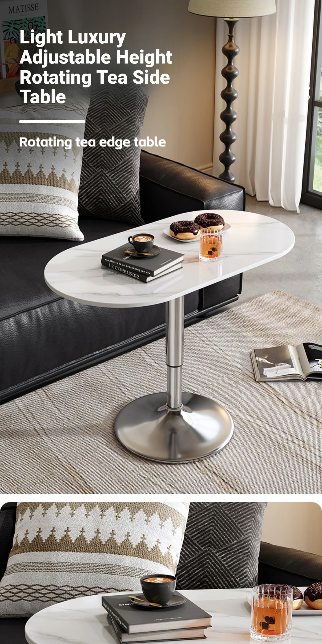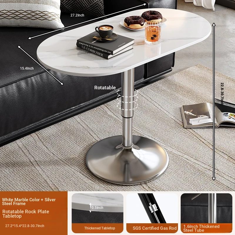 Stylish Adjustable Coffee Table: Portable Sofa Side Table with Elegant Stone Surface for Living Room - Versatile Laptop Desk & Writing Table, Perfect for Home Use