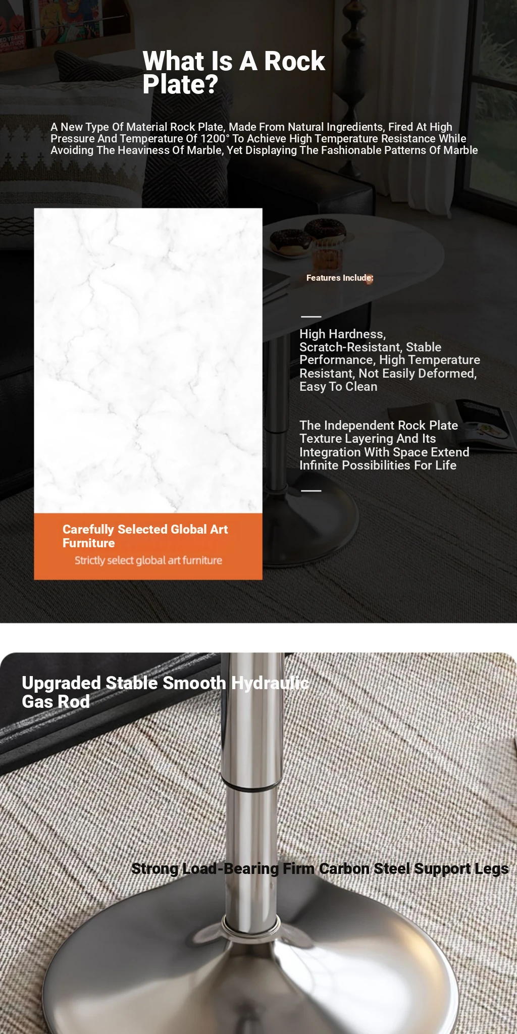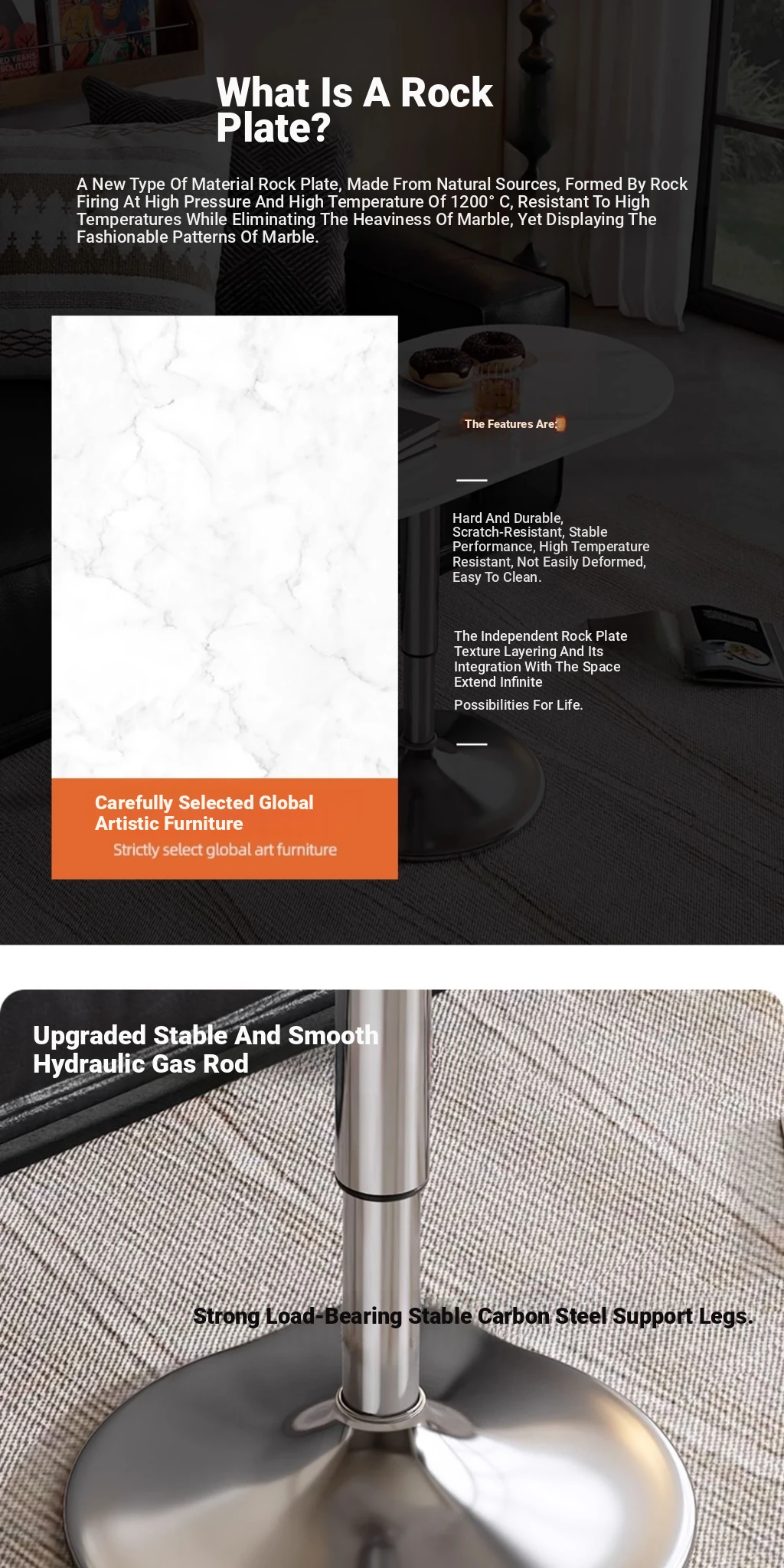 White rock table top + silver plating rack (lifting)