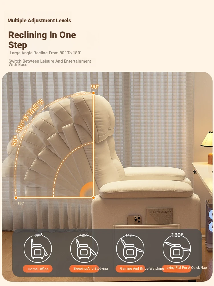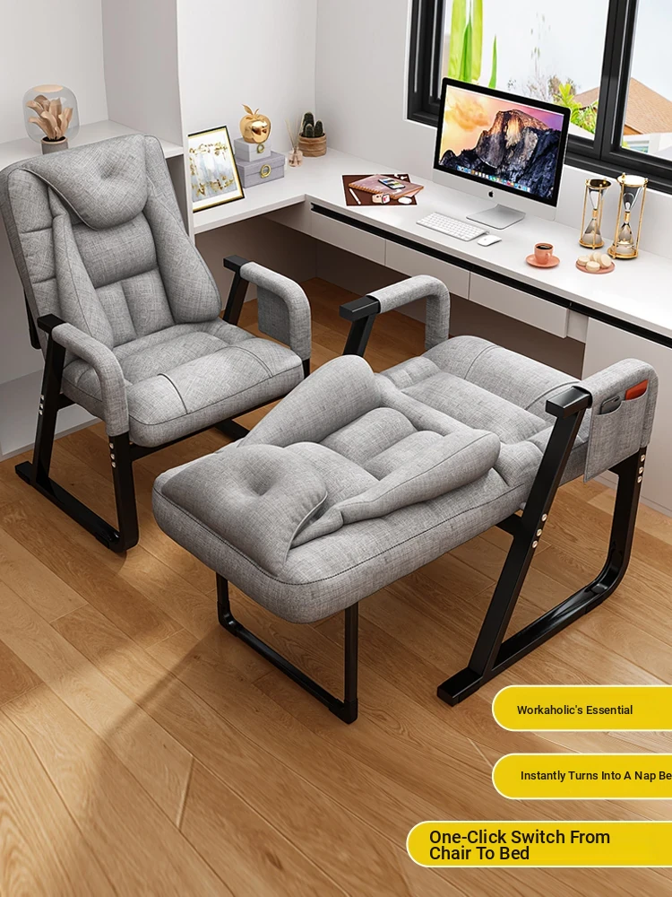 Versatile Reclining Office Chair - Perfect for Napping and Working, Comfortable Single Bed Design, Dual-Use Sitting and Lying Sofa Seat with Ergonomic Backrest