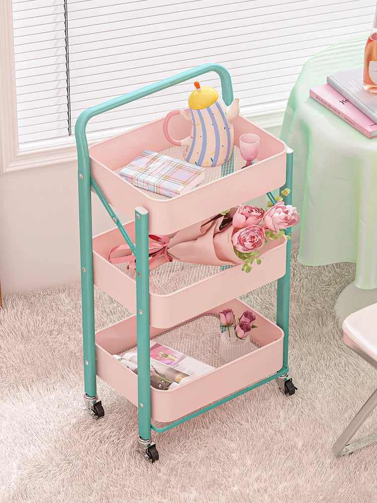 Foldable Dopamine Cart - Versatile Snack Storage Rack, Floor Bookshelf, Mobile Toy Organizer, and Bathroom Storage Solution for Your Home!