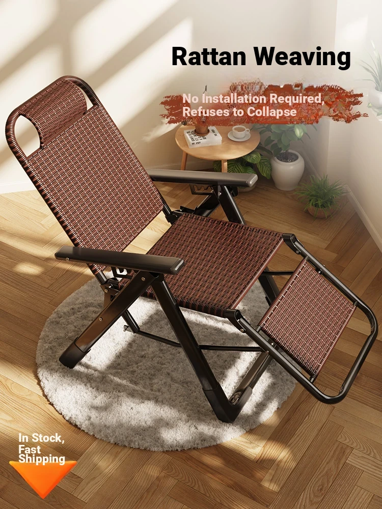 2025 New Folding Rattan Recliner Chair - Perfect for Seniors to Relax in the Sun, Enjoy a Nap, or Sit Comfortably. Stylish and Versatile with a Supportive Backrest, Ideal for Outdoor Leisure!