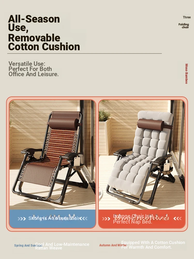Portable Folding Lounge Chair for Office Naps - Ideal for Summer, Home, Beach, and Balcony Relaxation. Perfect for Lazy Days with Comfortable Back Support!