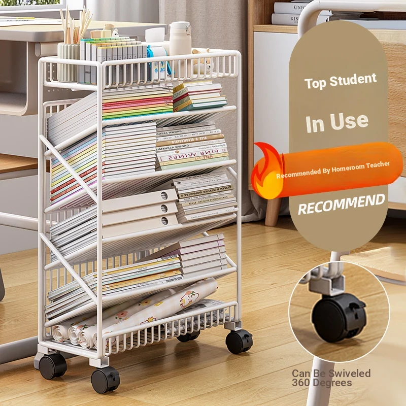 Mobile Bookshelf and Storage Rack for Classroom - Rolling Side Table Organizer with Book Holders for Students - Perfect for Easy Access to Books and Supplies