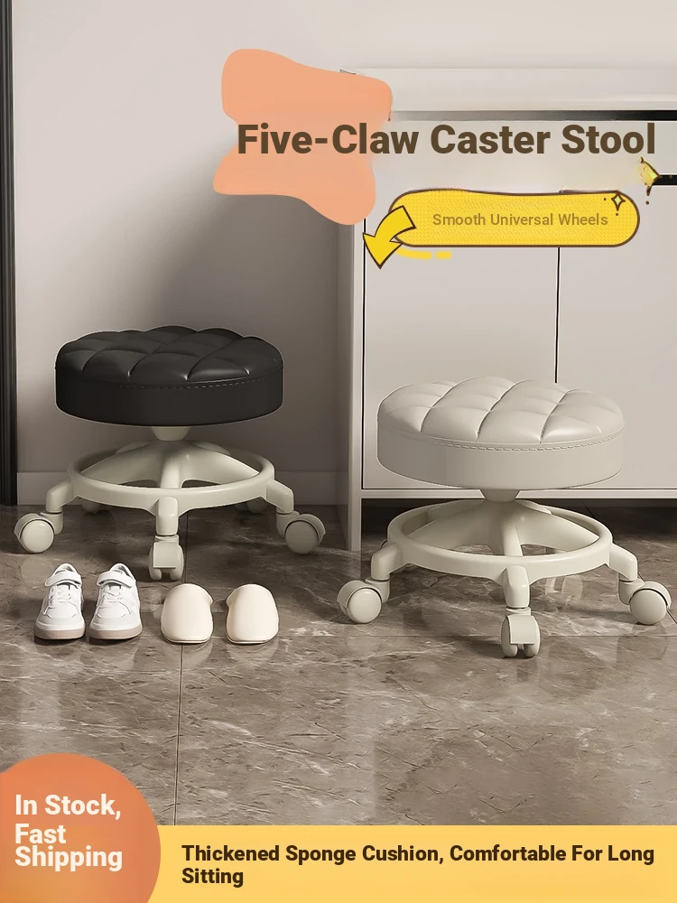Versatile Rolling Stool for Home - Compact Wheeled Stool for Entryway, Perfect for Shoe Changing, Toddler Learning to Walk, and Easy Mobility - Round Design with Smooth Wheels