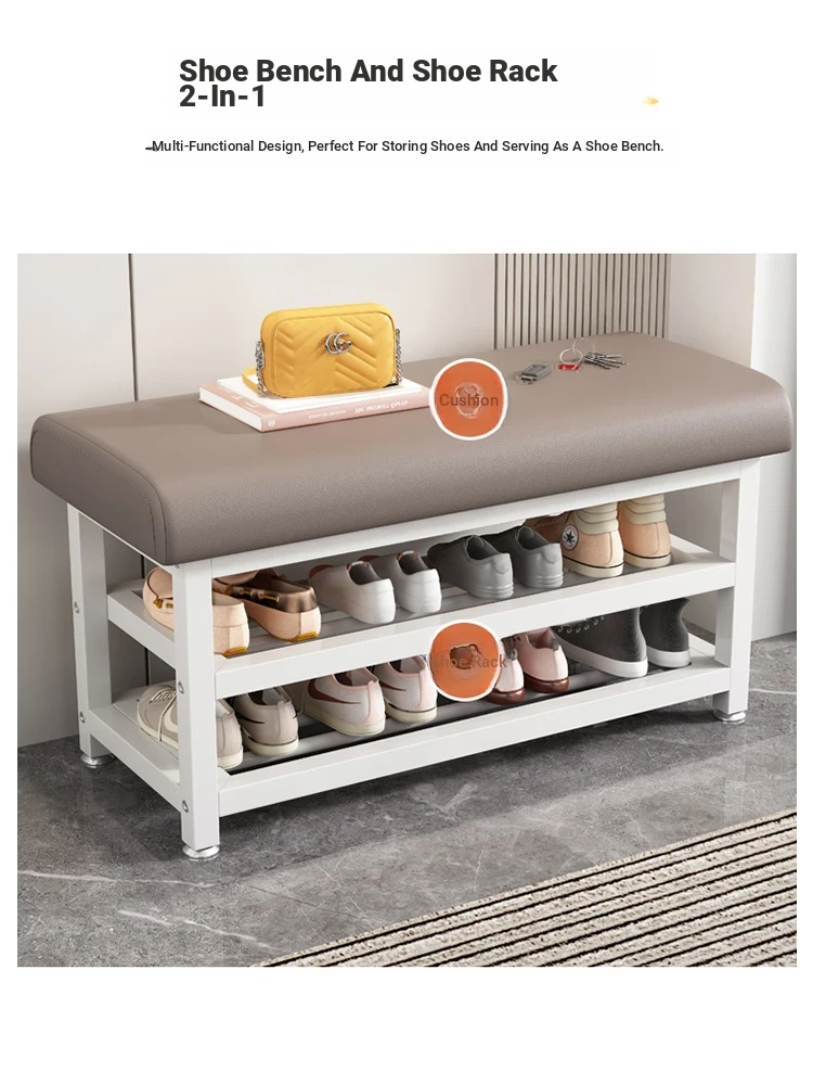 Stylish Entryway Shoe Bench with Multi-Layer Shoe Rack – A Chic and Functional Iron Shoe Cabinet for Your Home, Perfect for Comfortable Shoe Changing at the Doorstep