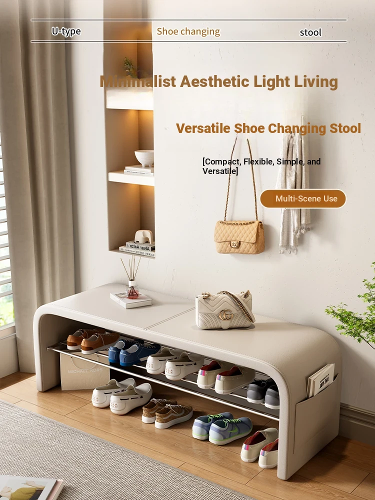 Stylish Entryway Bench with Shoe Storage – Multifunctional Long Stool for Bedroom and Hallway, Perfect for Shoe Changing at the Door, Elevate Your Home Décor with Chic Luxury Feel