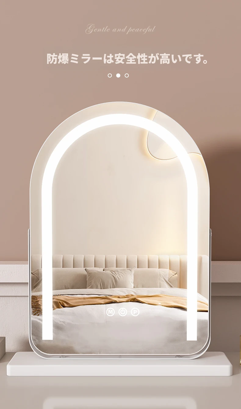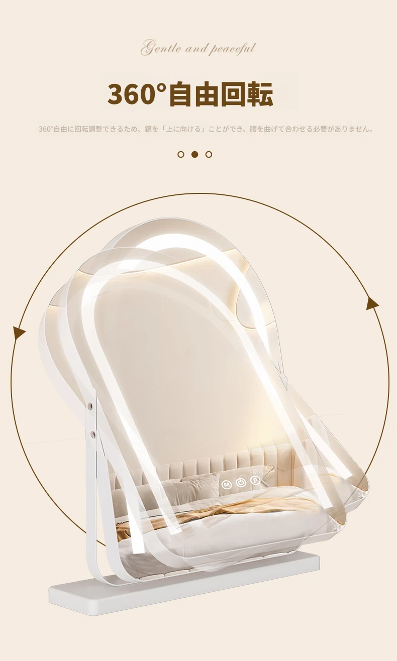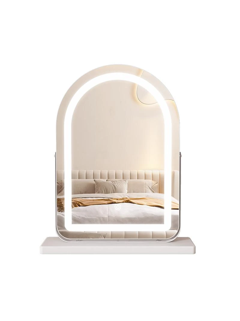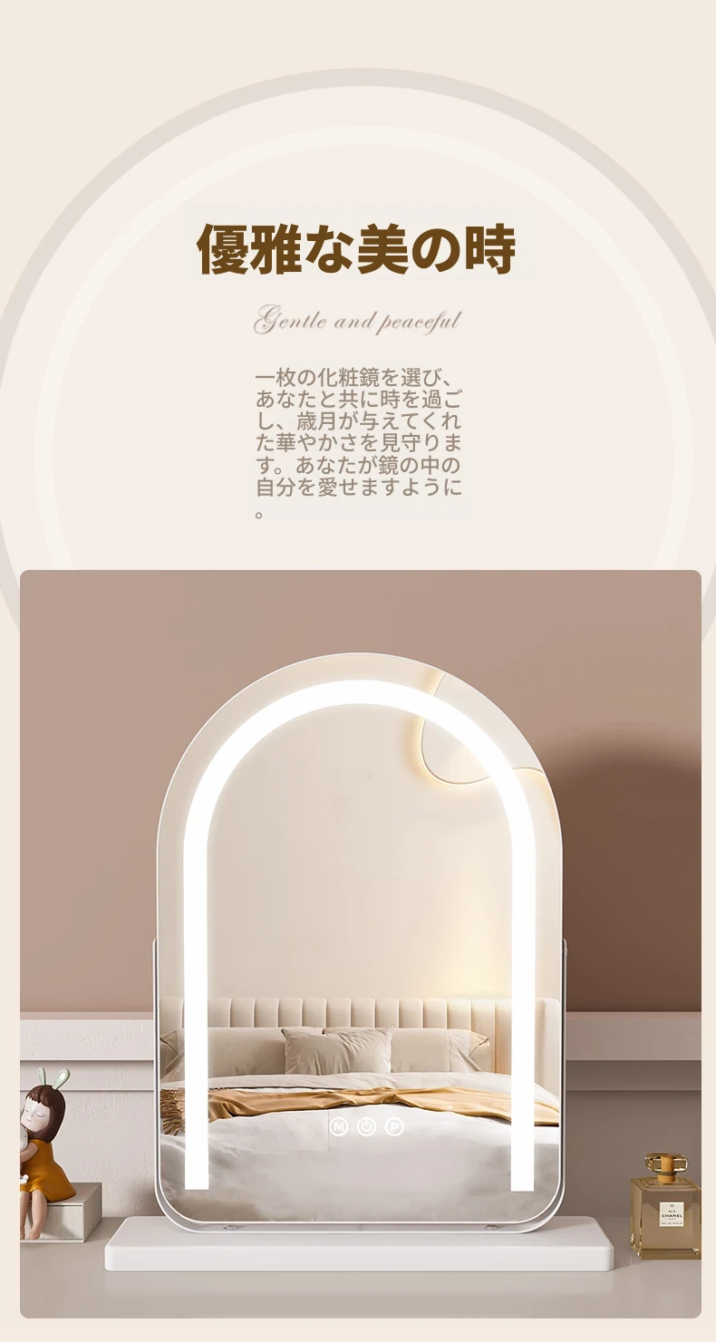 LEDライト付き回転式化粧鏡 - 大型アーチ型デスク用ミラー、スマート機能搭載!自宅の寝室やドレッサーに最適!明るさ調整可能で、あなたの美しさを引き立てる完璧なアイテムです!