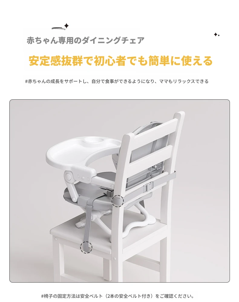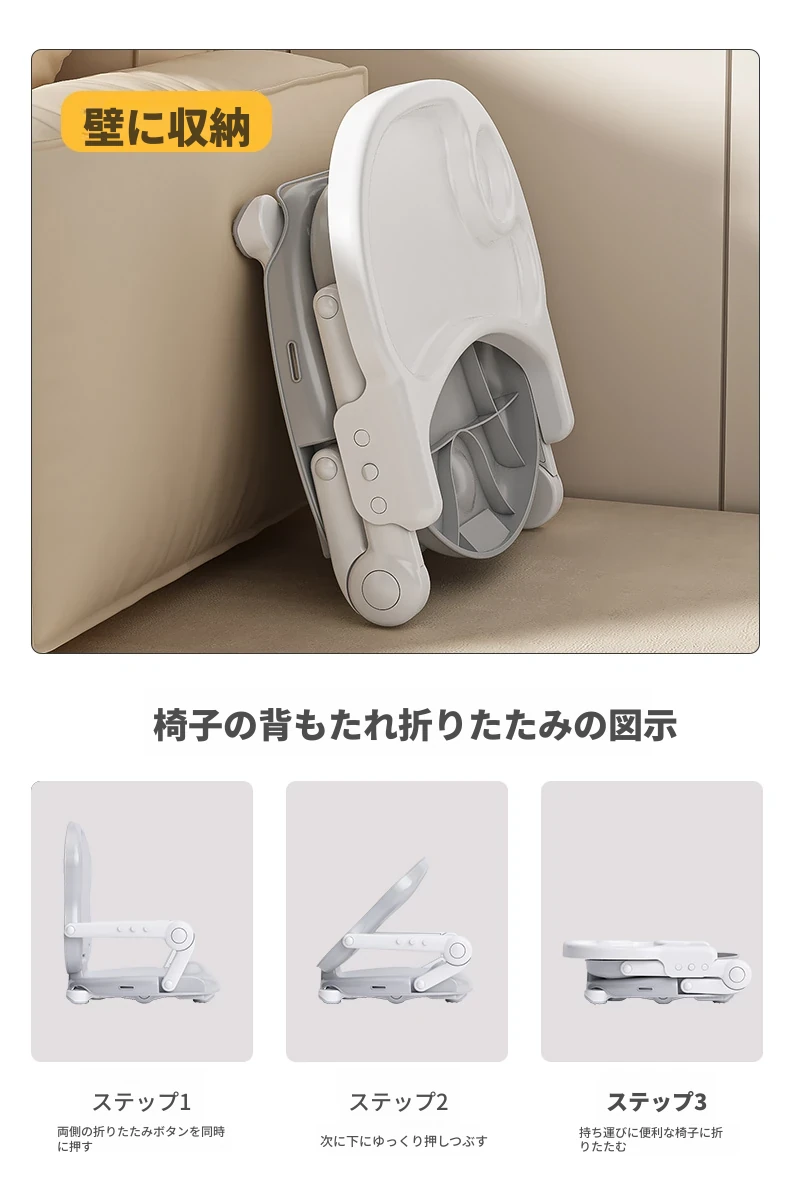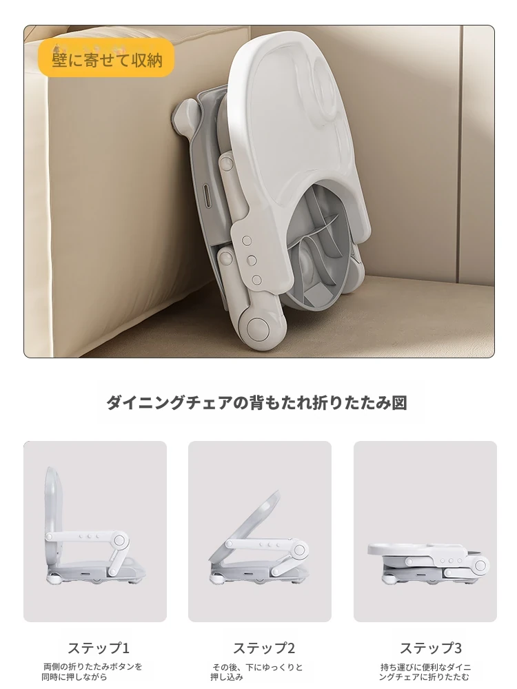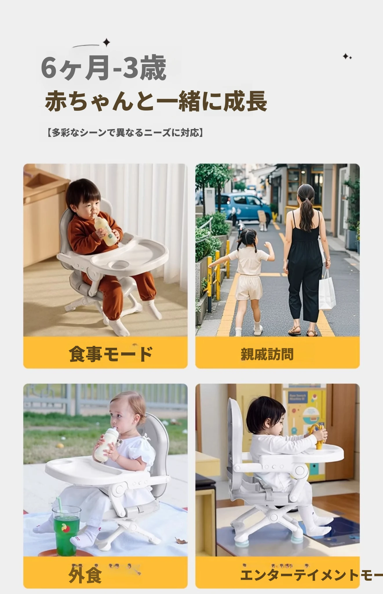 折りたたみ可能なベビーチェア - 家庭用の便利な多機能キッズダイニングチェア!赤ちゃんの成長をサポートし、食事の時間を楽しく!持ち運びも簡単で、スペースを取らない設計。