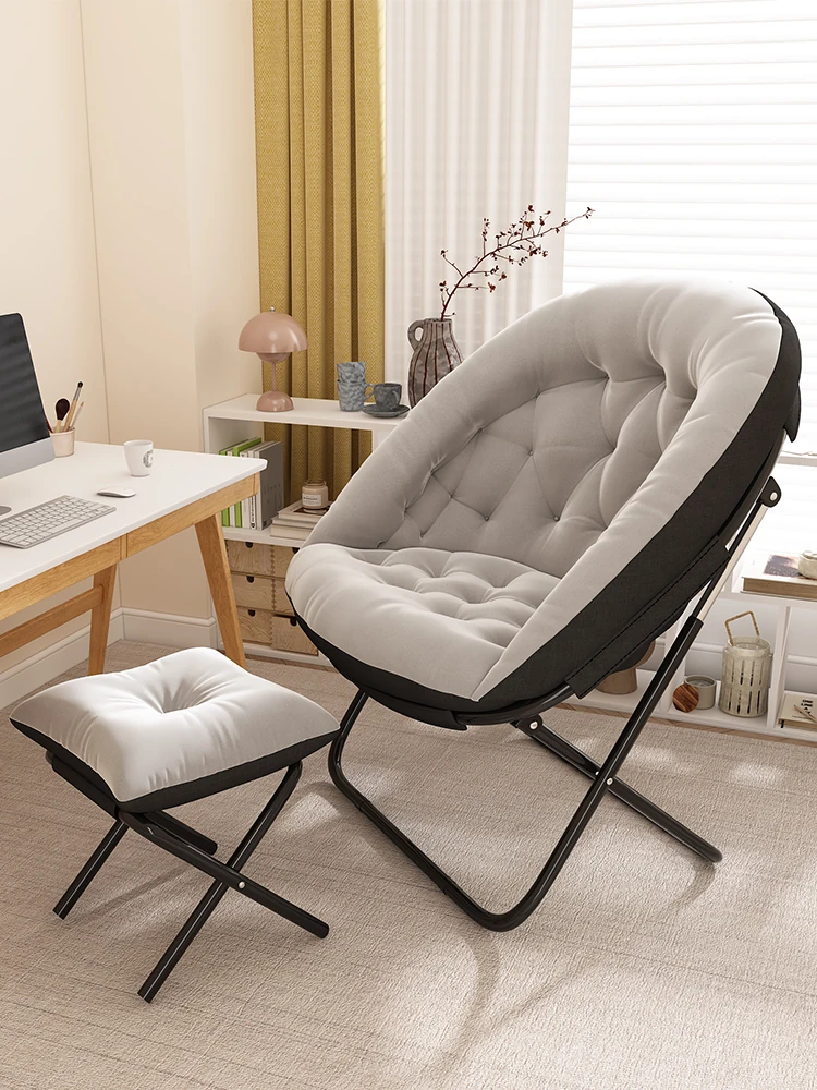 リクライニングチェア|座っても寝てもOK!オフィスや休憩に最適なラウンジソファ|寮や自宅でのリラックスタイムをサポートする月型デザイン|快適な背もたれ付きで、あなたの疲れを癒します!