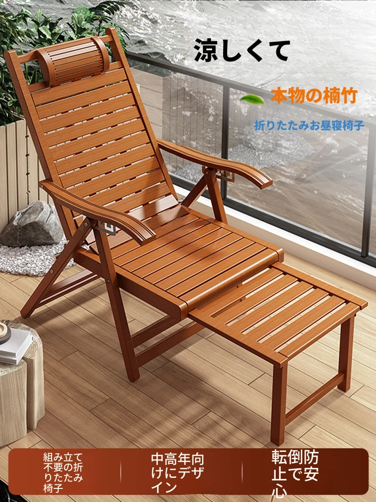 折りたたみ竹製リラックスチェア|夏の家庭用・オフィスでのお昼寝に最適!|天然木材使用で快適な座り心地|ビーチやバルコニーにもぴったり|お年寄りにも優しい背もたれ付き!
