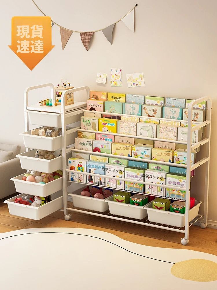 子供用フロア本棚|絵本収納ラック|おしゃれな多段式で、赤ちゃんの読書スペースを可愛く演出!キャスター付きで移動もラクラク♪おもちゃや本の整理整頓に最適!