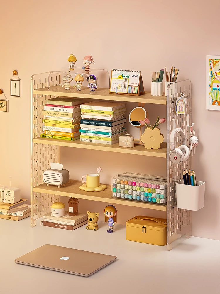 デスク用アクリルオーガナイザー!多層収納で机上がスッキリ整理。おしゃれなデザインで、お仕事も快適に!デスクスペースを有効活用する穴あきボード型の書棚。