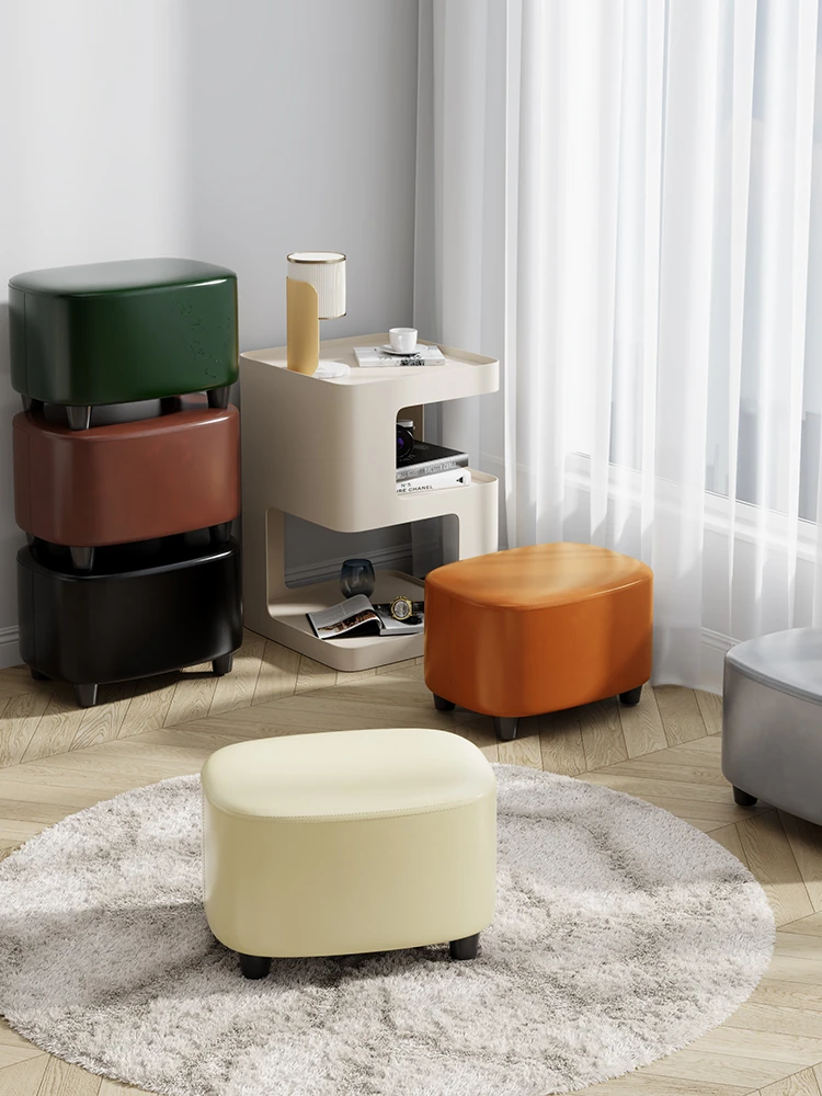 モダンでシンプルなデザインの家用スツール!リビングや玄関に最適なティーテーブルとしても使える、クリエイティブなレザー製のフットスツール。おしゃれな空間を演出し、快適な座り心地を提供します。