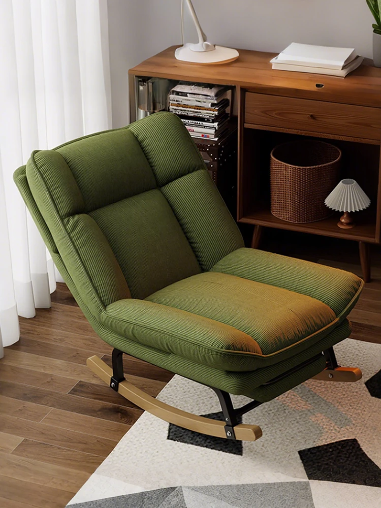 リラックスできる居間用ロッキングチェア!2025年新作、快適な大人用リクライニングチェアで、昼寝にも最適。シングルサイズのバルコニー用リラックスソファで、心地よいひとときをお楽しみください!