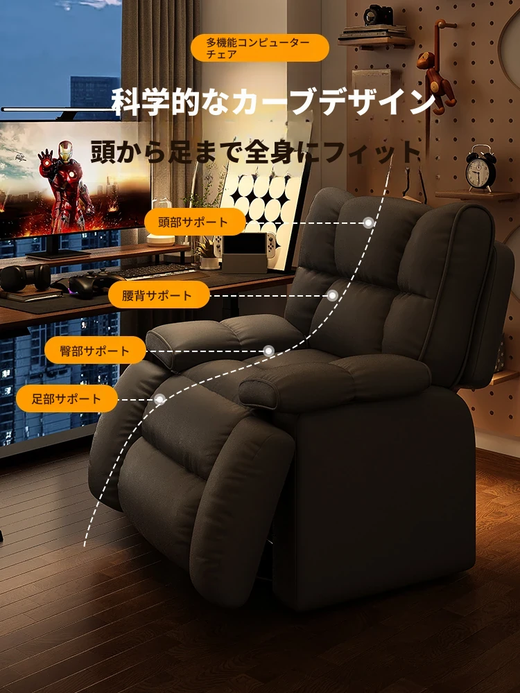 快適なデスクチェア|在宅仕事・学生寮に最適!長時間座っても疲れにくいリラックスソファ|書斎・寝室にもぴったりのリクライニングシート!