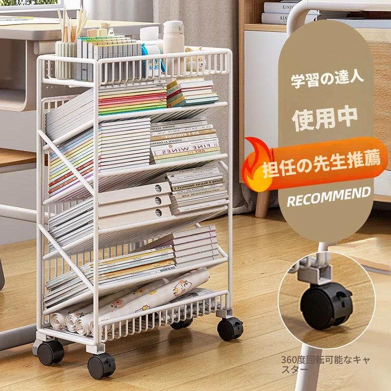 教室やデスクサイドに最適!移動可能な収納ラック - 学生のための本棚、キャスター付きでスムーズに移動!書籍を整理し、学習環境を整えましょう!