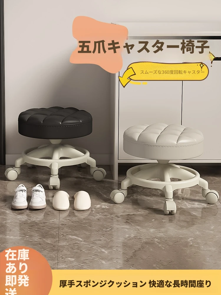 キャスター付き小型スツール - 家庭用・玄関用・靴の履き替えに便利!子供の歩行をサポートする移動式で、掃除も楽々。丸型デザインでおしゃれさも兼ね備えた一品。