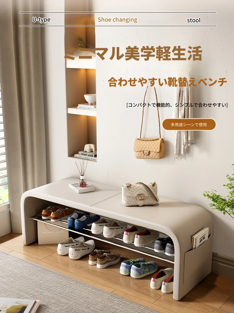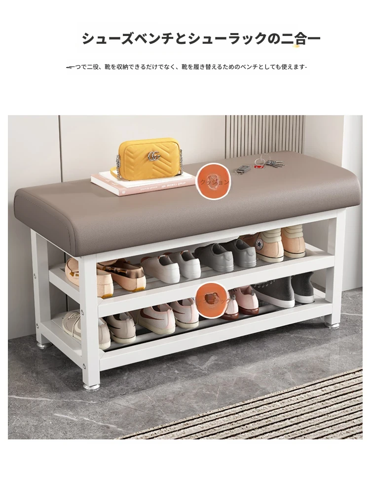 玄関用軽奢スタイルのシューズベンチ|多層靴ラック・シューズキャビネット一体型|おしゃれなアイアン製|靴を履くのが楽しくなる!